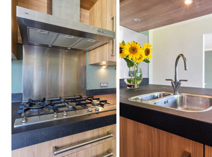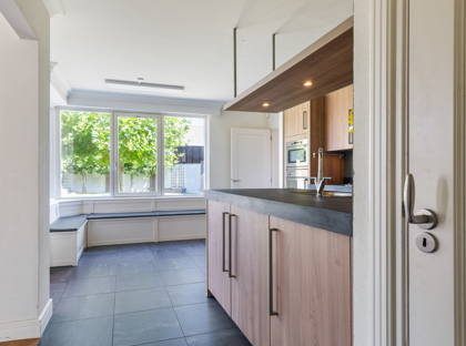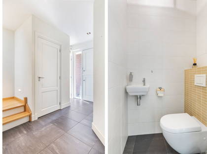 Bij het woonhuis aan de straatzijde zal direct de moderne en solide uitstraling opvallen. Die belooft royale ruimte en eigentijds woongemak. Een belofte die voorbij de voordeur meteen wordt ingelost. De luxe afwerking en het heldere karakter door de grote ramen zetten meteen de toon. Dit komt al fraai tot uiting in de sfeervolle woonkamer en de lichte leefkeuken.