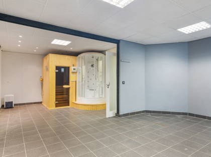 + Souterrain met royale relaxruimte, installatieruimte, spoelkeuken met keukenblok in hoekopstelling, provisieruimte en een berging. Hoog geplaatste ramen zorgen voor een prima lichtinval. In het plafond is verlichting geïntegreerd en er ligt een tegelvloer. Relax annex fitnessruimte is ingericht met een sauna en een stoomcabine. In de installatieruimte zijn kastenwanden waarin aansluitingen zijn voor wasmachine en droger. Ook zijn hier de HR-combiketel, de warmtepomp en verdelers van de vloerverwarming geïnstalleerd.