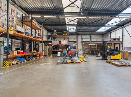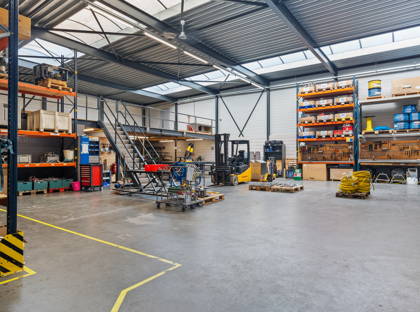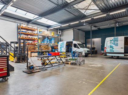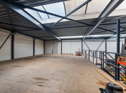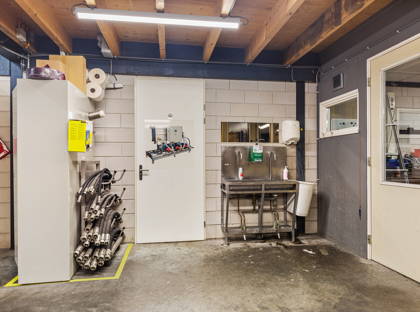 Het binnenterrein voor de bedrijfshal geeft de nodige parkeerruimte voor medewerkers en bezoekers. En verder is er veel ruimte om te manoeuvreren. Via overheaddeuren is de bedrijfshal vervolgens toegankelijk. Door de royale afmetingen en hoogte zijn er binnen in de hal veel mogelijkheden voor tal van bedrijfsactiviteiten.