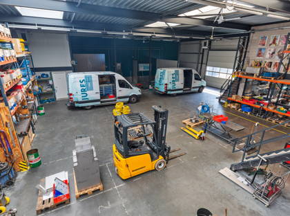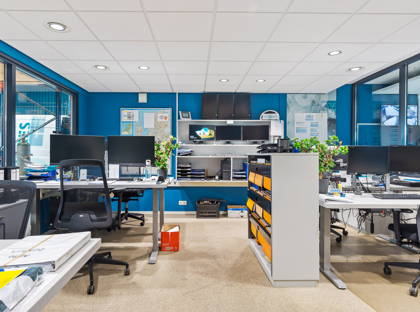 + Kantoorgedeelte met twee verdiepingen is uitgevoerd met airco, systeemplafonds, data-aansluitingen en een siergrindvloer met vloerverwarming.