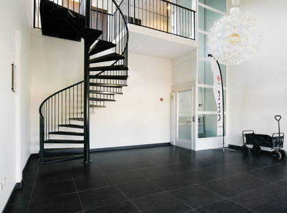 + Dubbele openslaande deuren geven toegang tot ruimte van ca. 88 vierkante meter. Ramenrij en hoge gevelvensters laten vanaf twee zijden het daglicht volop naar binnen.