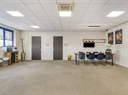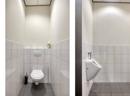 Aanvullend beschikt de ruimte over een eigen pantry met keukenblok en fonteintje, een separate toiletruimte met dames- en herentoilet en een praktische berging. Het geheel is voorzien van moderne faciliteiten zoals airconditioning, mechanische ventilatie, glasvezelaansluiting en zonwering, wat zorgt voor optimaal comfort en gebruiksgemak.
