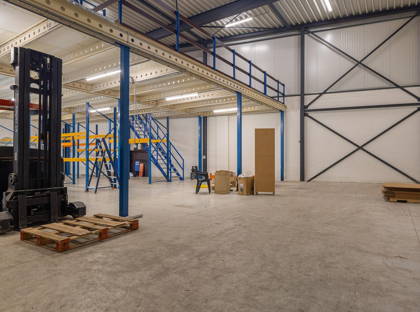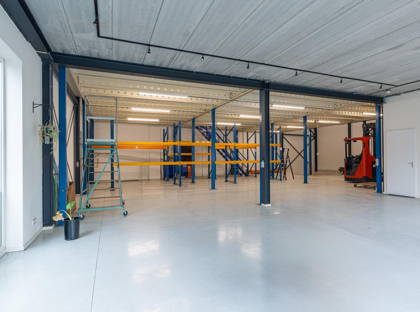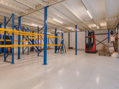 + Bedrijfshal: De aanwezige bedrijfshal met overhead deur maakt het eenvoudig om goederen te laden en lossen, wat het logistieke proces efficiënter maakt.