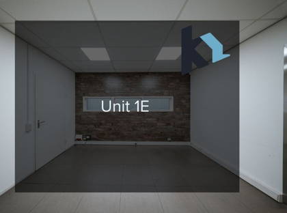 + Unit 1E beschikt momenteel niet over een actieve overheaddeur; hier is een voorzetwand geplaatst.